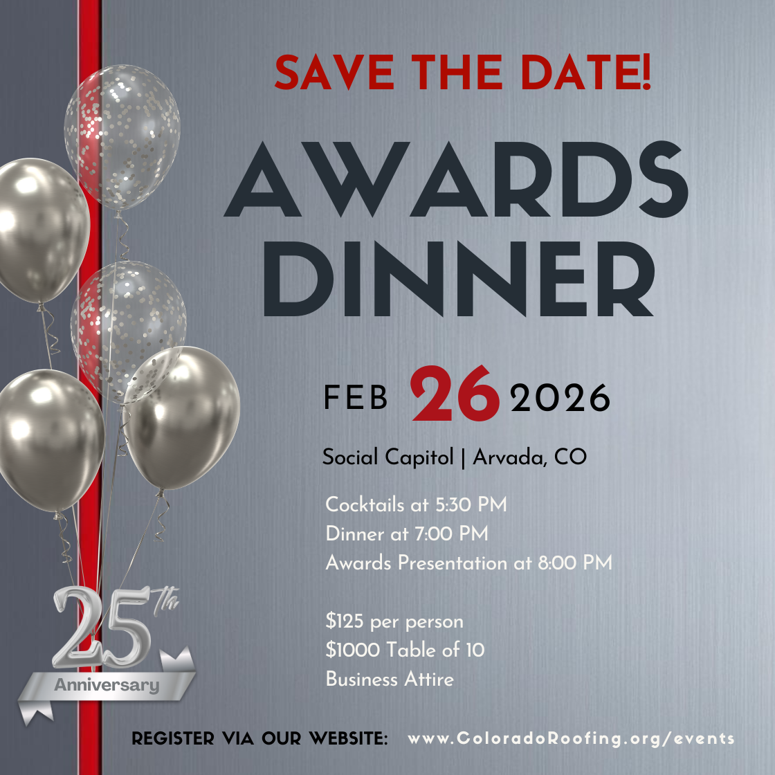 > > > 2027 Awards Dinner | Thursday, February 25, 2027 (date to be confirmed!)